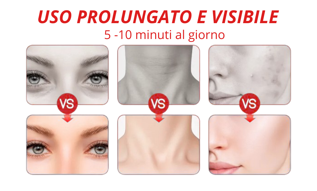 Combatti un incarnato opaco, irregolare o le rughe visibili? Comprendiamo la frustrazione di provare prodotti senza risultati concreti. DolceLift trasforma la tua pelle in soli 10 minuti al giorno. Il nostro dispositivo stimola la circolazione, la produzione di collagene e proteine, essenziali per un incarnato luminoso e giovane. In sole 2 settimane, la tua pelle ritroverà luminosità e morbidezza. Le rughe si attenuano, le irregolarità si rigenerano e compare un bagliore radioso. Scopri la differenza DolceLift e riscopri il potenziale della tua pelle, senza sforzi